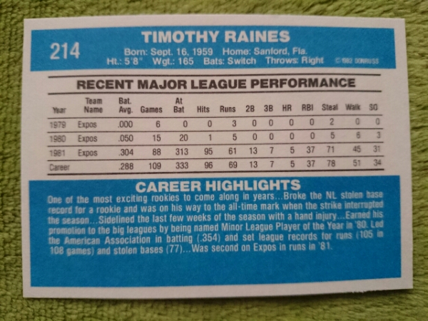 ★★★DONRUSS 1982 #214★★★