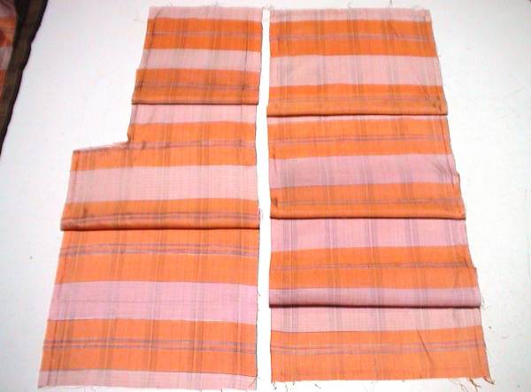 着物はぎれ(古布)人絹織物羽裏地 オレンジ (36x177,25x55cm)