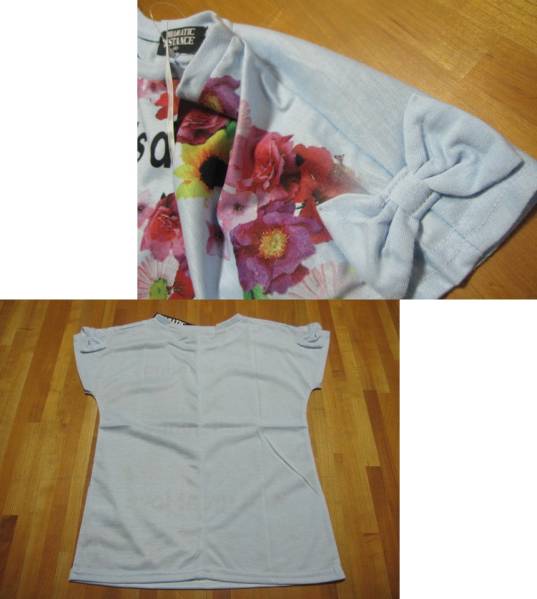 *送料無料*新品*160*ブルー×花柄プリント*肩リボン*半袖Tシャツ*NICHEE*