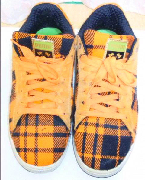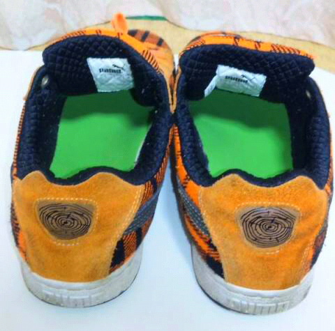 踵部には年輪のグラフィックがデザインされ、様々な要素から汲み取られたカラーやマテリアル使いが非常に魅力的☆左右アシンメトリーなチェック柄で秋のハロウィンにもおすすめなカラーリングです!US10 28cm。
