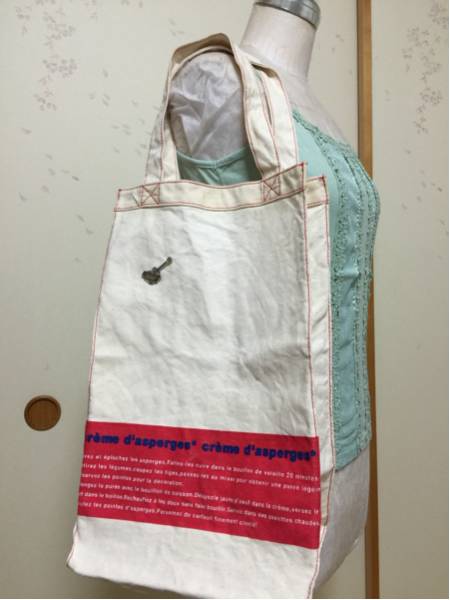 サイズは縦42横24マチ18です。材質は多分綿だと思います。