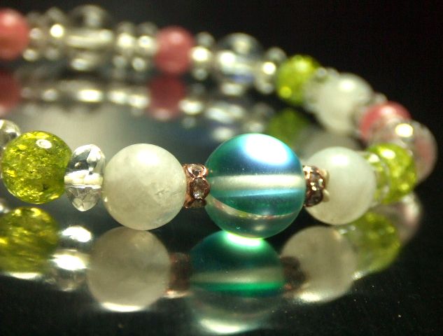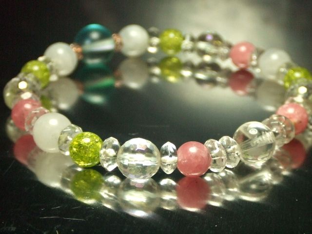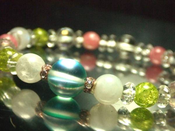 | ヒーラーデザイン!パワーストーンブレスレット!! (送料無料!!) 売り上げ700本突破!!!!! 今回は、 美しくオーロラのように輝くルナフラッシュ!! そして、 女性に大人気のインカローズ×ムーンストーン!!! ルナ・・・ ローマ神話に出てくる、 月の女神の名がついたこのストーン・・・ 美しくオーロラのように輝きます。 インカローズとムーンストーンの組み合わせは、 女性のモテ運アップ!! 内面、外面ともに、 女性の魅力を高めてくれるといわれております。 さらに、 観音菩薩の、幸福を呼ぶ六字真言入りの水晶・・・。 そして、 グリーンのクラッククリスタル、 128面カットの、 シャボン玉のようなアクアクリスタルを混え、 とてもカラフル、 おしゃれなブレスレットに仕上がりました。 ※その他、格安にて、、不思議ヒーリング、梵字パワーストーン、 チベット天珠ブレス、霊気パワー、その他、 不思議な開運グッズなど、多数出品しております。 ぜひご覧ください。 ↓ ↓ ↓ ![]() <素材> ・ルナフラッシュ(ガラス) 約10mm ・インカローズ 約6mm ・ムーンストーン 約8mm ・アクアクリスタル(128面カット)約8mm ・水晶(六字真言入り) 約8mm ・ロンデル(アスフォー社) ・伸縮性ゴム <サイズ> 内周 約16センチ・程度 (サイズ変更につきましては、 お問い合わせください。 写真は見本になります。同等のブレスをお届けいたします。) <パワーストーンの持つ意味・効果> ムーンストーン 恋人への最高の贈り物 好きな女性に贈ると愛が芽生える、 友情が愛情に変わる 二人の愛を確かにする 遠距離恋愛の守護石 安眠 感情をやわらげる 緊張感をやわらげる アクアクリスタル 優雅さ、知性を象徴する石 コミュニケーション能力を高める 潜在能力を引き出す 想像力を豊かにする 幸福を引き寄せる 金運アップ インカローズ 永遠のパートナーとの出会い 幸福な恋愛、結婚 愛、情熱、夢の象徴 トラブルを解決する つらい過去、トラウマの癒し クリアクォーツ(水晶) 万能の石 組み合わせた石のパワーを高める 高い浄化力 潜在的な能力、エネルギー、霊的な覚醒を促す 幸運を呼ぶ石 ※発送は、定形外郵便(無料) の予定でございます。 (紛失、破損などの場合の保障がございません。) ※レターパックプラス ( 全国一律510円 ) (対面で手渡し。追跡サービスあり。破損の保証なし。) ※ ゆうパック ( 地域別送料 ) 鹿児島から発送。60サイズ。 もございます。 ※掲載しております写真は、 照明、また、お使いのパソコンなどの条件などにより、 実物と、多少、色あいが違うことがありえますので、ご了承ください。 また、天然石は、細かいキズ、また、 内部に、クラック、インクルージョンなどが含まれる場合がございます。 パワーストーンの意味、効果は、 古来よりの言い伝えなどによるものです。 効果の絶対の保証はいたしておりません。 落札後の苦情、返金は、一切お断りいたします。 | ||