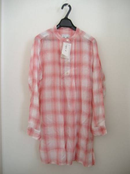 ふんわり軽い綿素材(綿100%)で涼しく着て頂けそうです。インド製。脇に20cm程のスリットも入っておりますので、足さばきもスムーズかと思います。前はスタンドカラー気味でボタンは4個。定価23,100円。