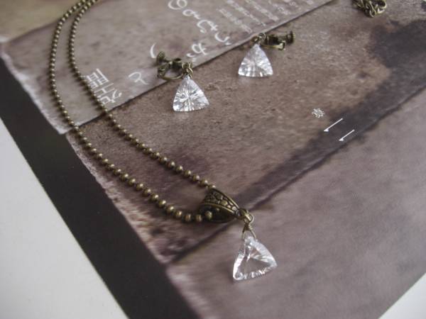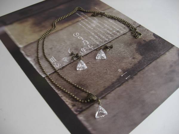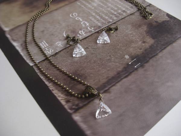 儚さを繋いで・・シリーズです♪神秘的な水晶・・可憐な水晶のネックレスとイヤリング2点セットです♪12ミリ位のコンケープの水晶は華奢なボールチェーンを合 わせました♪繊細な多面カットがロマンチックしています♪ネックレスの長さは70センチ+アジャスター10センチで最長80センチ位です♪イヤリングは全長 3・5センチ位です♪ピアスにも変更出来ます♪それぞれ単品でも出品しています♪ハンドメイドをご理解頂いてノークレーム、ノーリターン でお願いします