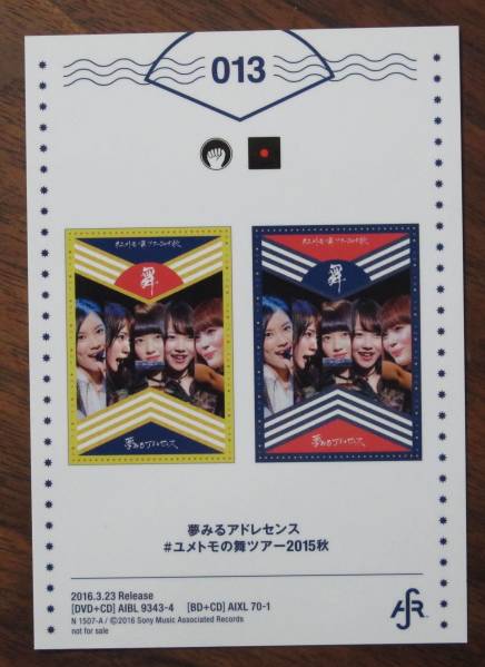 夢みるアドレセンス/夢アドカード013/#ユメトモの舞ツアー2015秋CD初回仕様限定盤 封入特典[検索]トレカ/トレーディングカード
