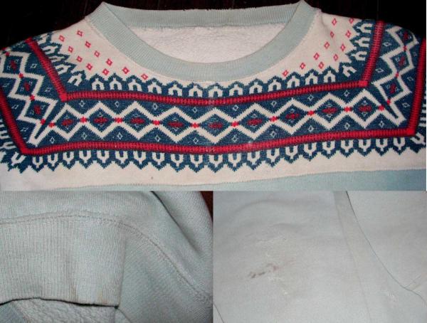 表記:ありません。 肩幅:55cm 袖丈:41cm 身幅:49cm(脇下) 着丈:54cm(全長) ※手作業の為多少の誤差はご容赦下さい。肩幅、袖丈はセットインを境に計測しています。いびつな形状ですので、あくまでご参考程度にお願いします。ヴィンテージスウェットのM寸ぐらいかと思います。 |
