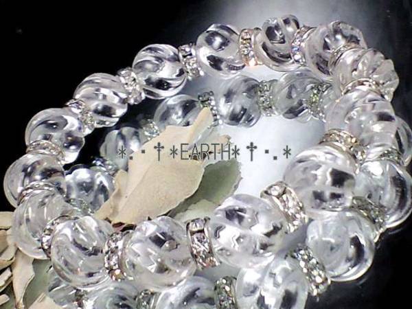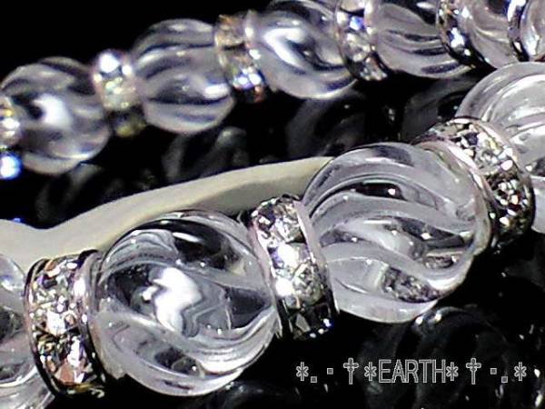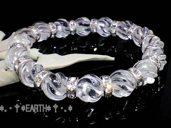 天然石★12ミリSライン螺旋彫水晶&銀ロンデル 数珠 | |