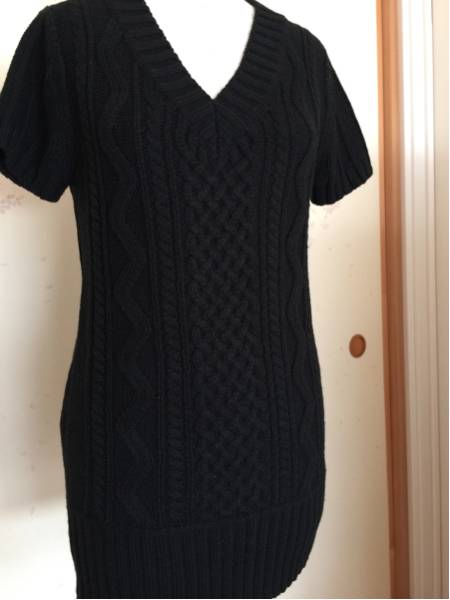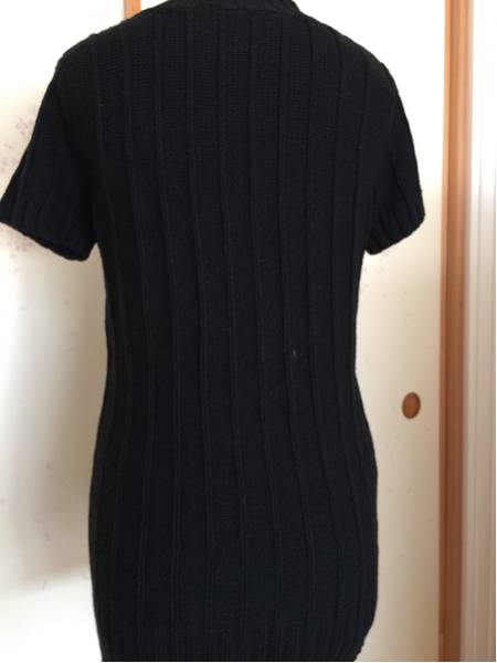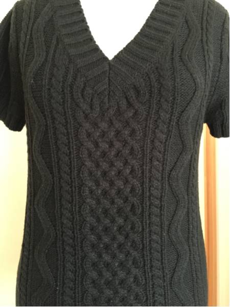 黒ケーブル編み半袖ロング丈ベストです。