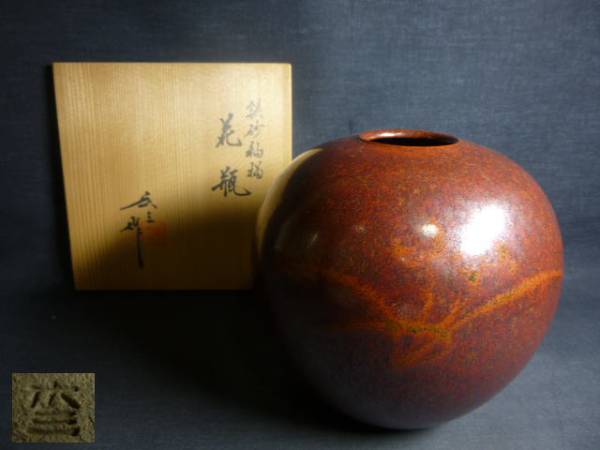 旧家から 市川廣三(広三) 鉄砂釉描 花瓶 共箱