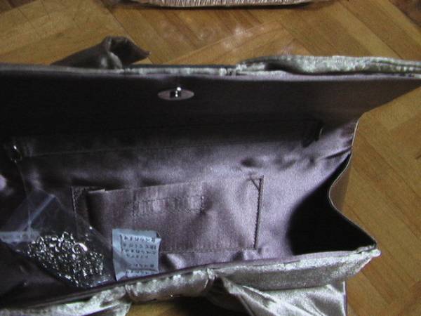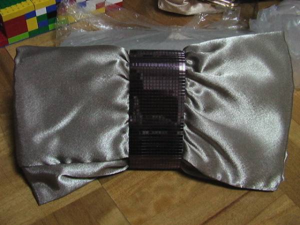(^^) ベージュ フリル 宝石 パーティバッグ リボン 未使用 ウエディング 結婚 婚活 マッチング