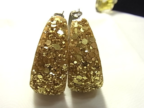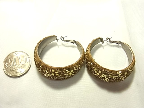 フェイク金箔が装飾されている輝くフープデザインピアス☆