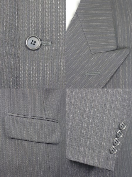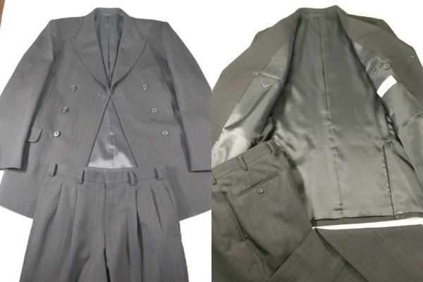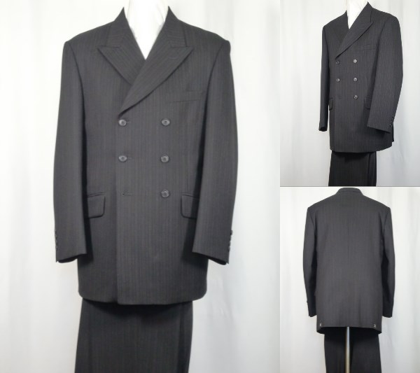 ★☆ M-76 W6B×3 ピーク衿スーツ 新品 秋冬 黒縞 日本製☆★
