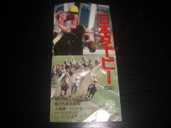 | 『1991年ダービー 入場券の半券』 状態悪い です。 | ||
