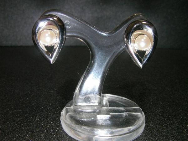 296♪スタイリッシュデザイン ピアス検シルバーカラー×パール⑥