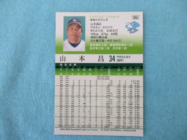 ★BBM 2008★1st Version〔046 山本昌 中日ドラゴンズ〕トレカ♪