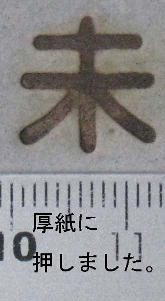 商品説明 | 干支(未)の漢字のミニ焼印です。 焼印は、柔らかいものにも押せるように7ミリの深彫の印面を採用しています。 焼印についてのその他の説明はHPやyoutubeを参照下さい。 発送時に簡単な説明書を同封いたしますので御覧頂けれ 直火式なので、コンロやバーナーで加熱して使います。 未使用ですが試し押しをしておりますので多少変色している 場合もあります点ご容赦下さい。 |
