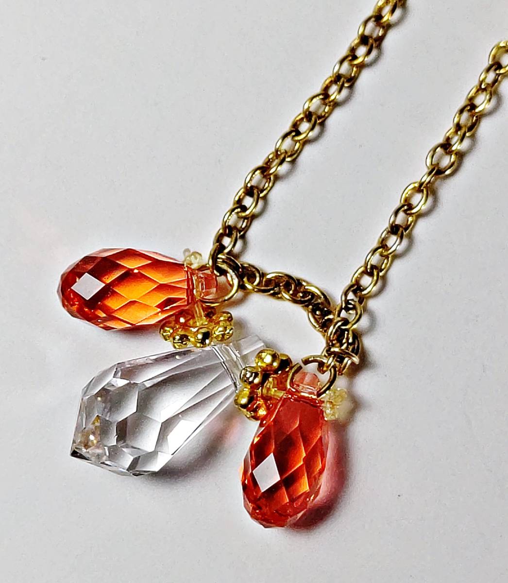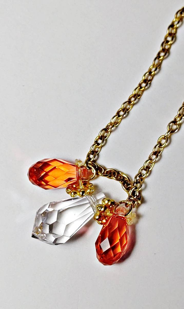 ★ラインストーン クリア オレンジ ブリオレットカットストーン ネックレス★