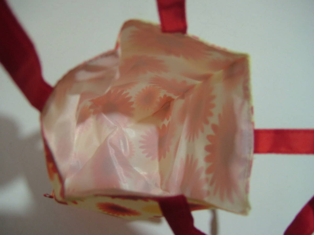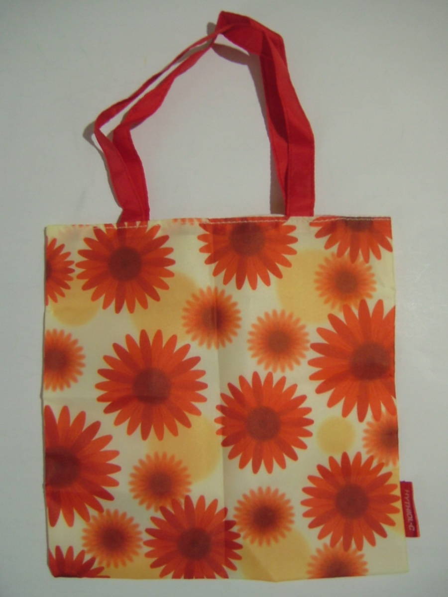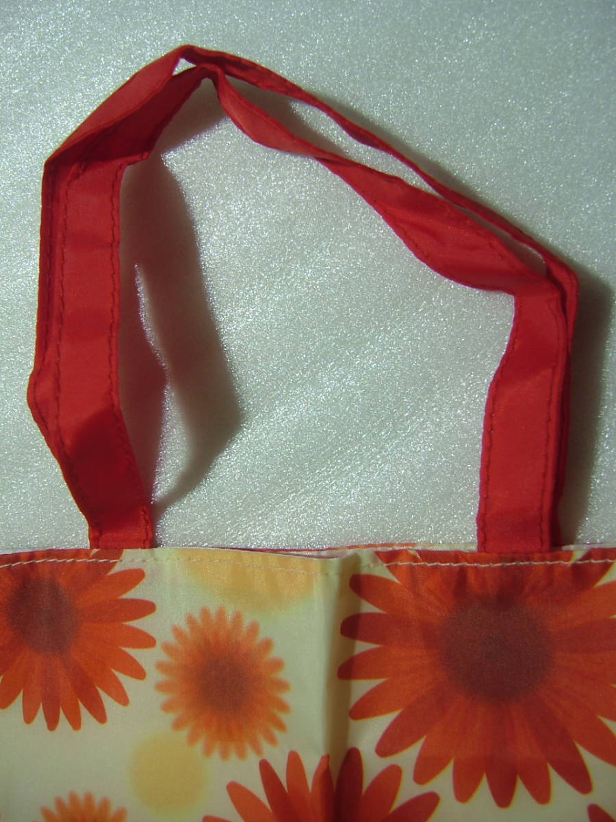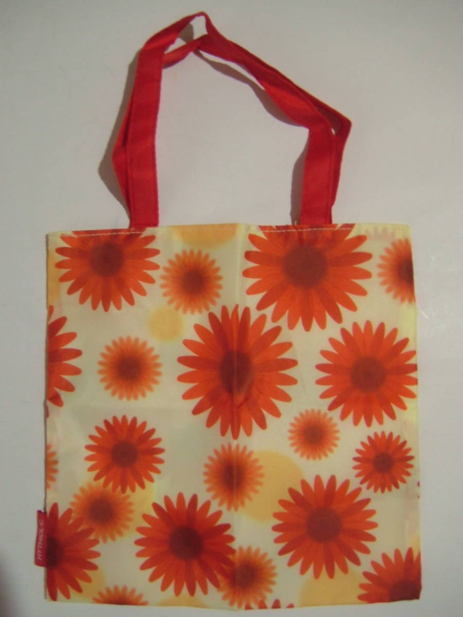 花柄フラットミニバッグ 20×27cm クリーム色×オレンジ 表裏ポリエステル100% ガーベラ