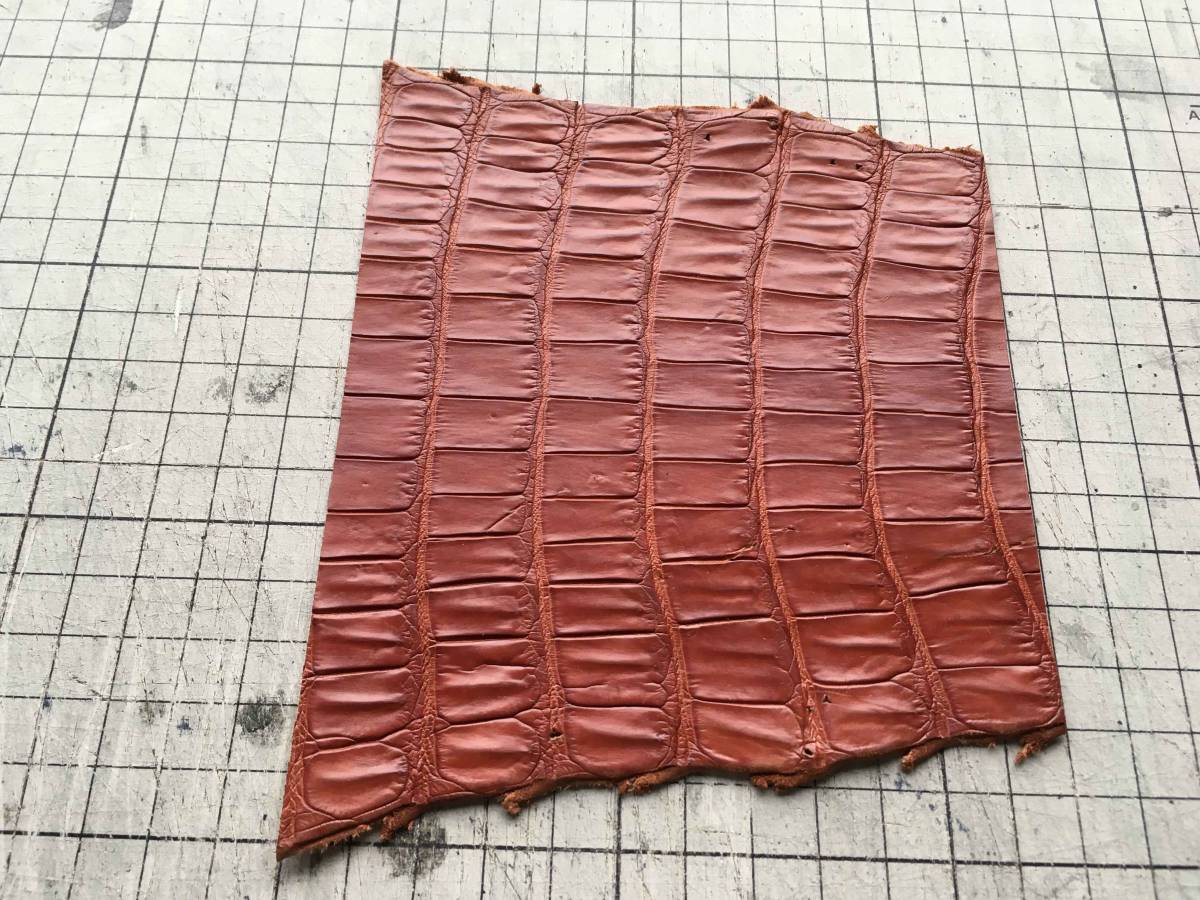 CR1-748★マット赤土 最高級スモールクロコダイル レザークラフト アリゲーター はぎれ ハギレ 革小物名刺入れ折財布 キーケース