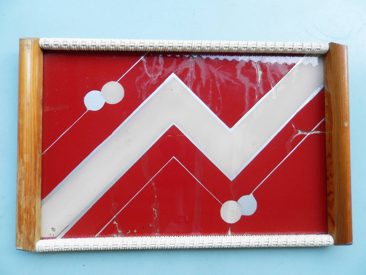 ドイツ トレー トレイ お盆 赤/白 ガラス 木製 レトロ ビンテージ 雑貨 インテリア キッチン