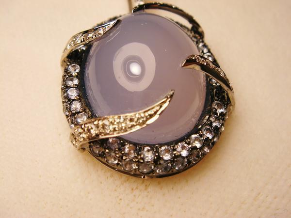 ブルーカルセドニーに合うサファイアで取り巻いていますが、重いセンスにならないようライトブルーサファイアを使用してあります。