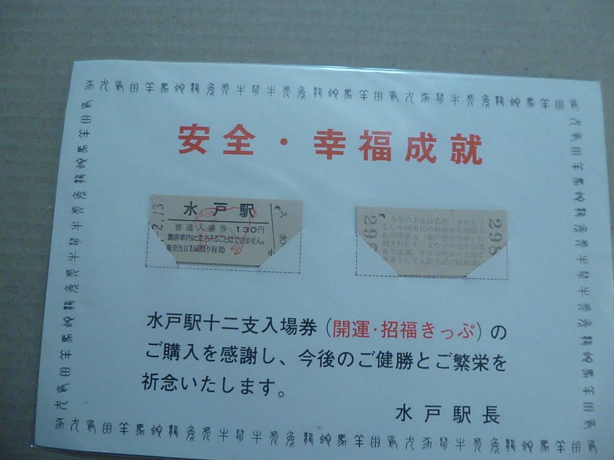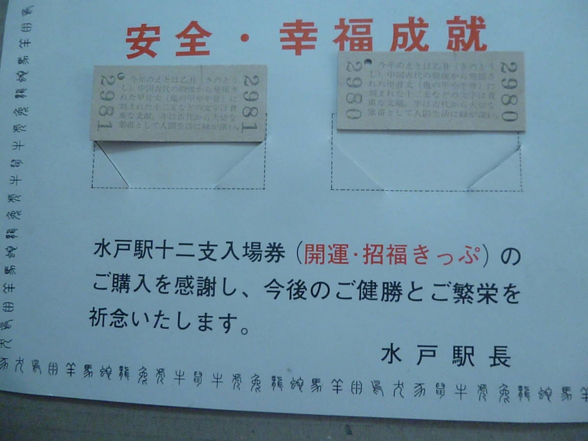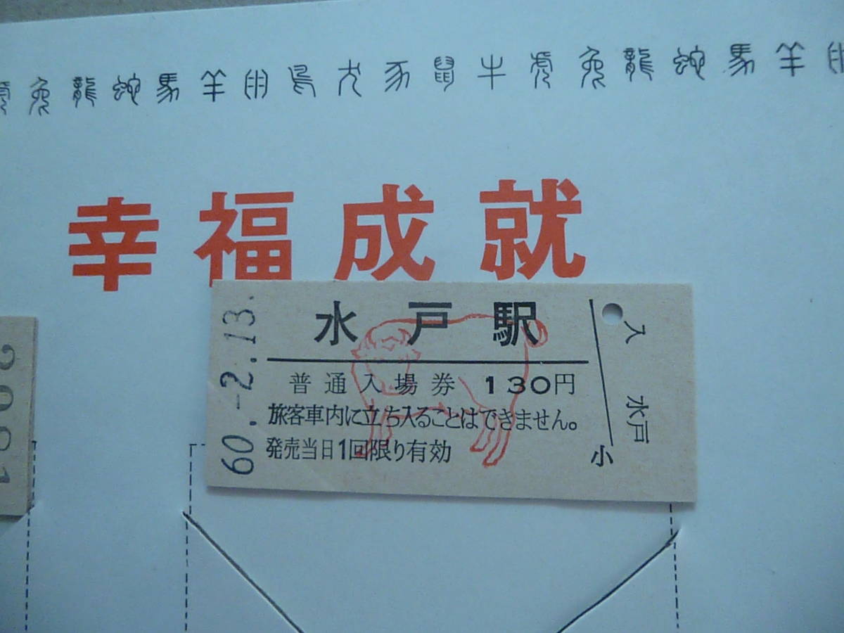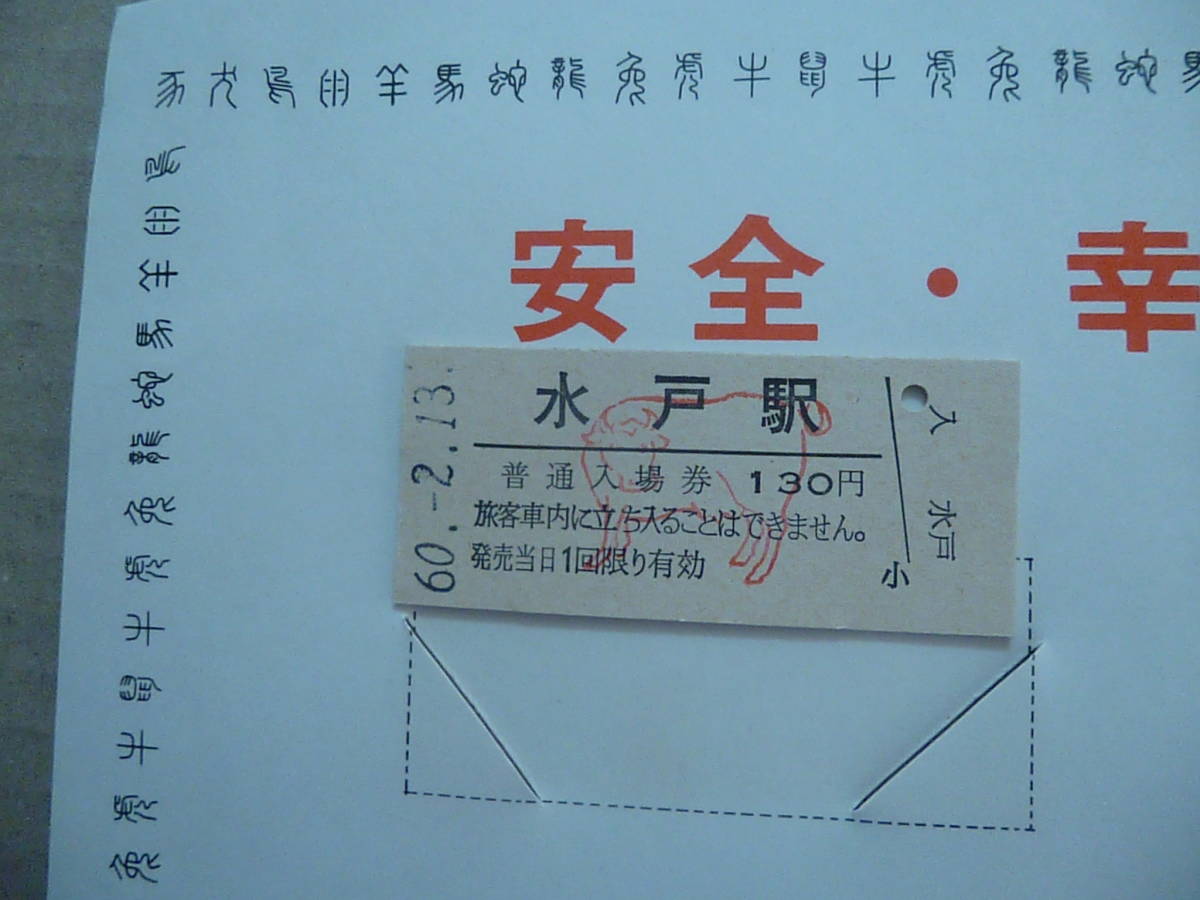 | JR東日本 水戸駅 十二支入場券(開運・招福) 昭和60年2月13日 安全・幸福成就 でございます。 |
