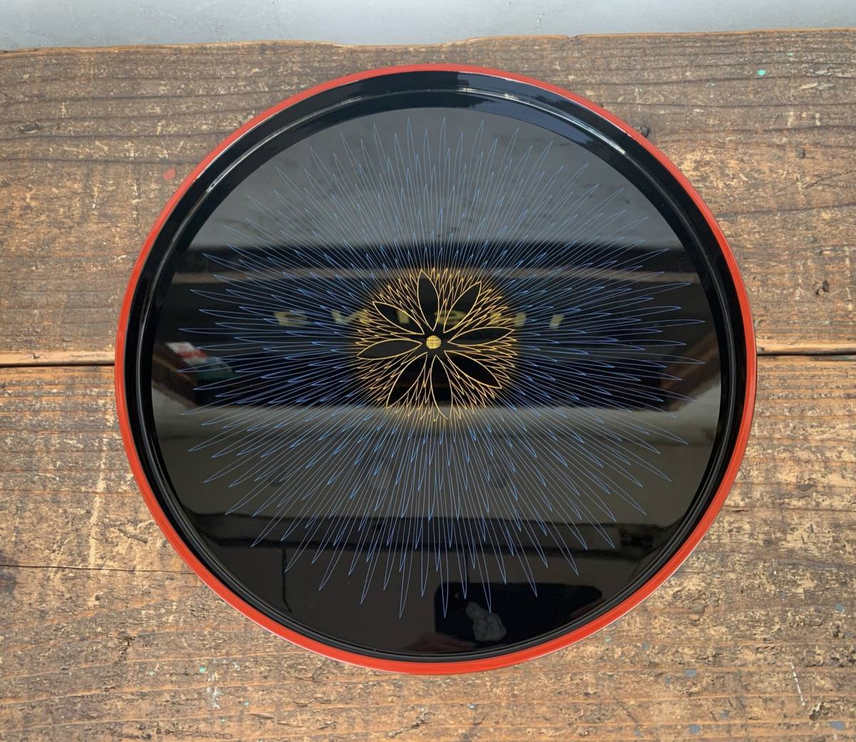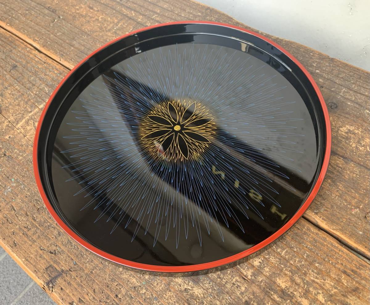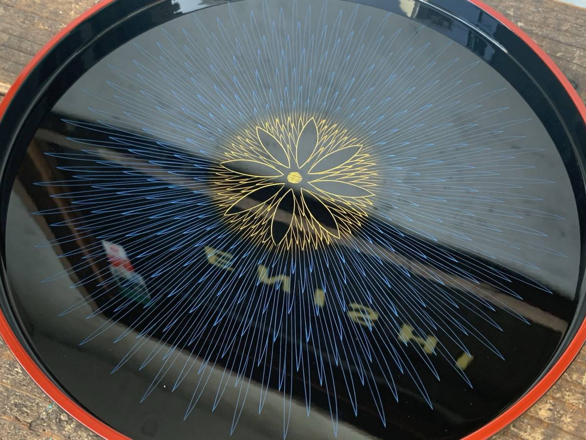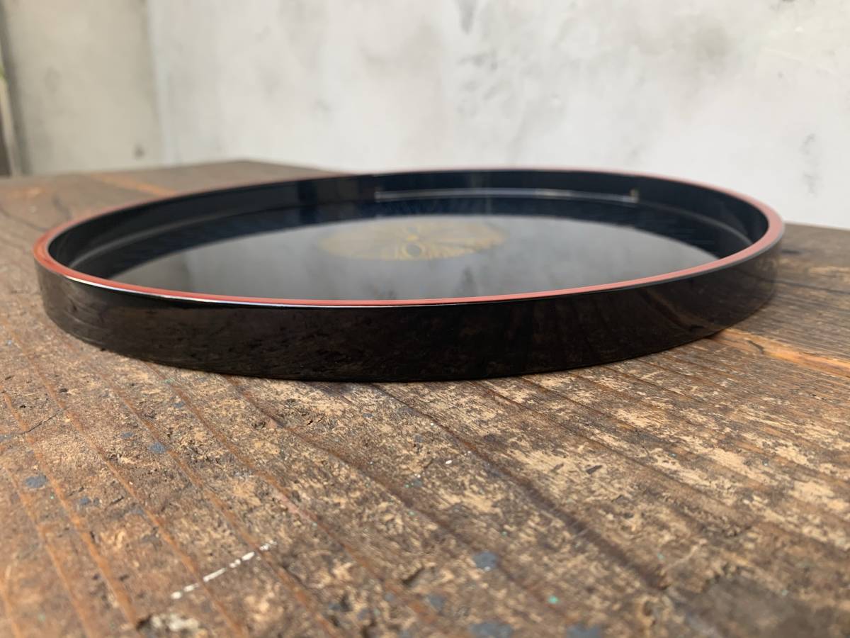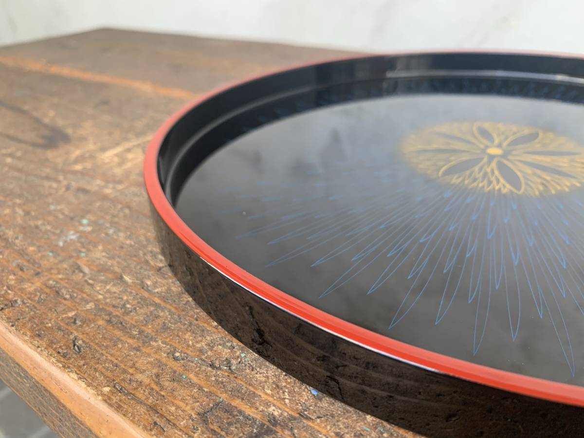 ★未使用★伝統工芸品★山中漆器★関美紀夫★丸盆★沈金★青毛彫★天然木★木製★ウッド★トレー★うつわ★