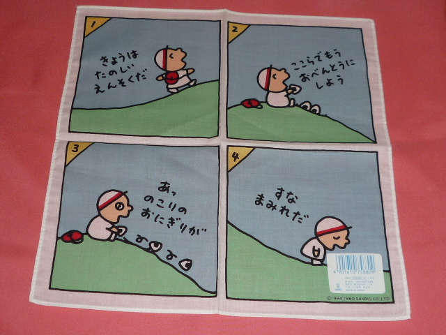☆商品説明☆ ご覧いただきありがとうございます^^ サンリオキャラクター みんなのたぁ坊のハンカチです。1989年、日本製。レトロなたぁ坊の絵柄でと~ってもかわいいですよ♪大きさはタテ 約27.5cm、ヨコ 約27.5cmです。たいへん古いものですがコレクション用として大切に保管していましたのでシールタグ付き、未使用できれいな状態ですが家庭での保管になりますのでご理解いただける方のみご入札をお願い致します。 ☆発送方法☆ 定形外郵便、ゆうぱっく ☆コメント☆ ノークレーム、ノーリターンでお願いします。ご不明な点がございましたらお気軽にお問合わせ下さい。他にもみんなのたぁ坊キャラクターグッズたくさん出品しております☆ 良かったらご覧下さいね*^^*