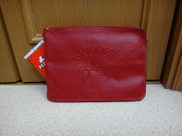 PEANUTS/ピーナッツポーチ型収納エコバッグ スヌーピーL レッド×メッセージ