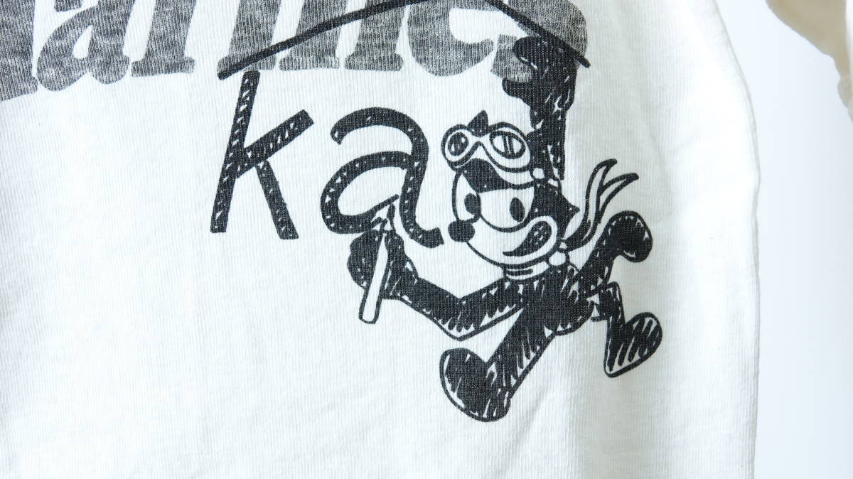 日本製OVERTHESTRIPES×marka コラボ フィリックス・ザ・キャットプリント Vガゼットラグランカットソー