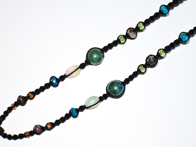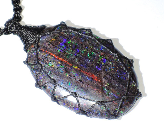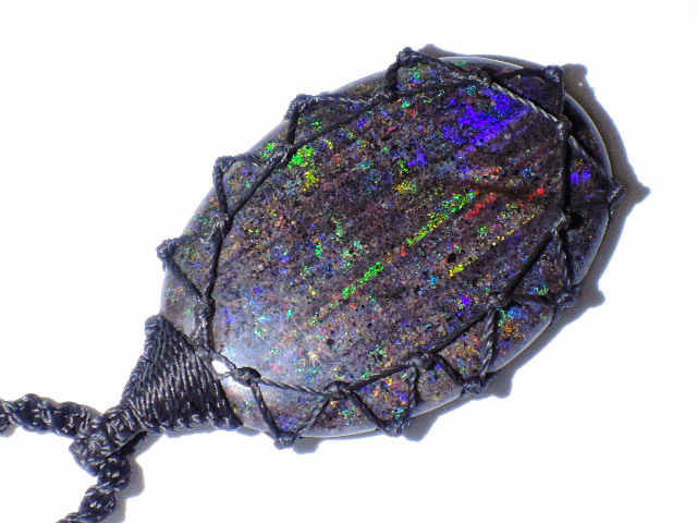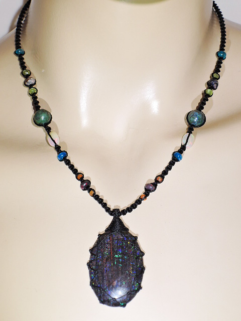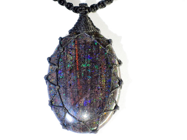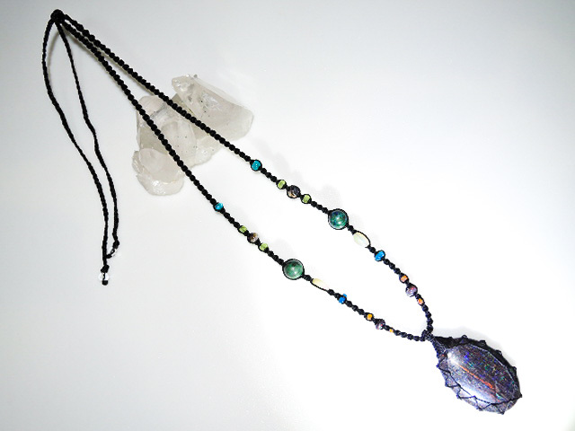 ★マトリックスブラックオパール★35ct/35mm★天然石黒蛋白石ビーズネックレスペンダント★ハンドメイドマクラメ編み kamesan