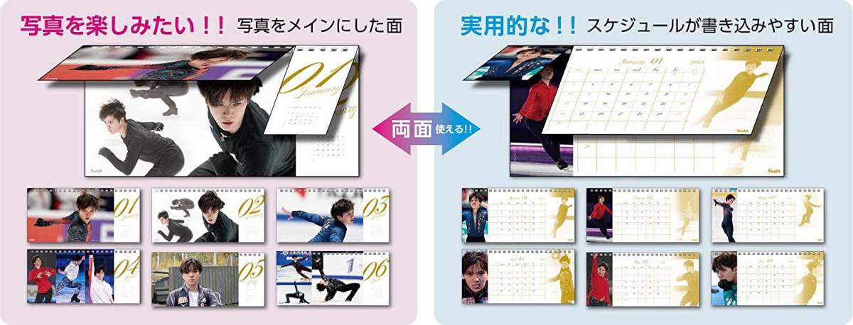 写真と暦がセパレート!!いつでもお気に入りの宇野昌磨選手を飾れます。各月で写真メインのページと書き込める実用的なページの2タイプがあり、自分に合った使い方ができます。