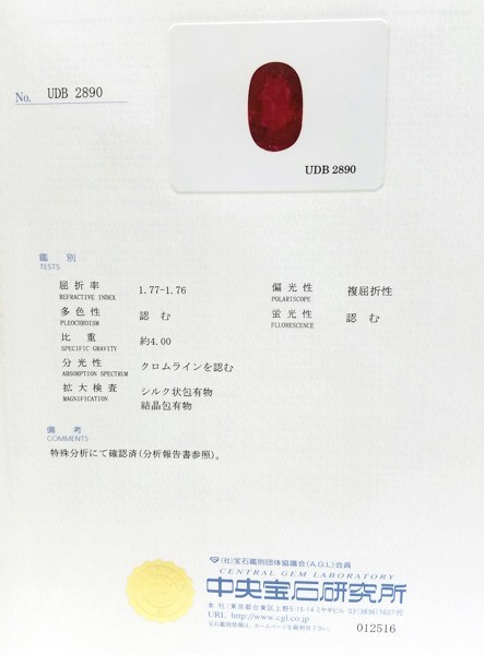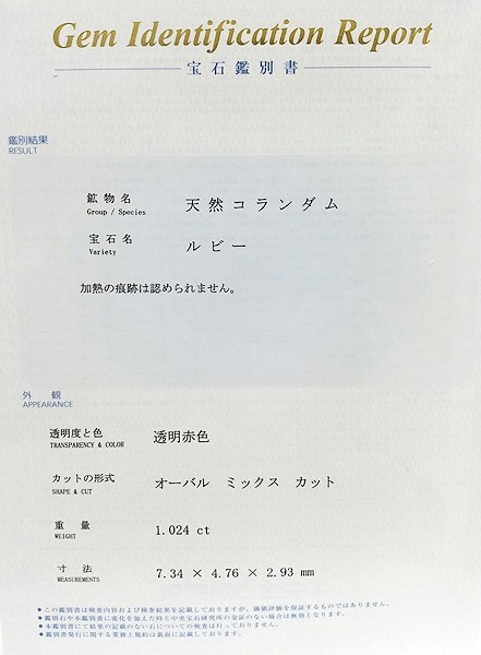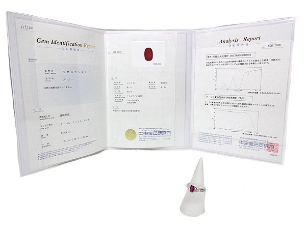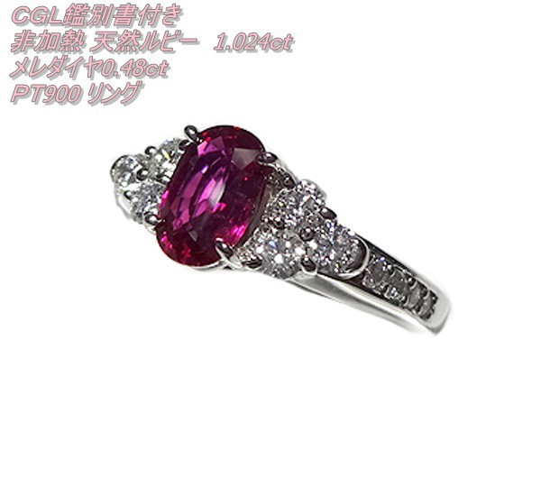 商品名 | 新品未使用 非加熱 天然ルビーリング R1.024ct/D0.48ct CGL鑑別書 |