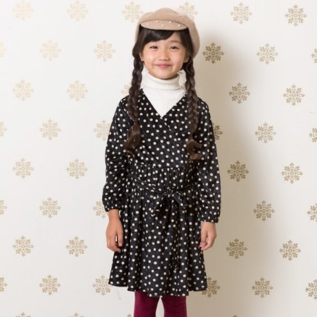 新品 apres les cours アプレレクール 2WAYドット カシュクール ワンピース 黒 ブラック 子供用 キッズ 90サイズ ベビー 女の子 トップス
