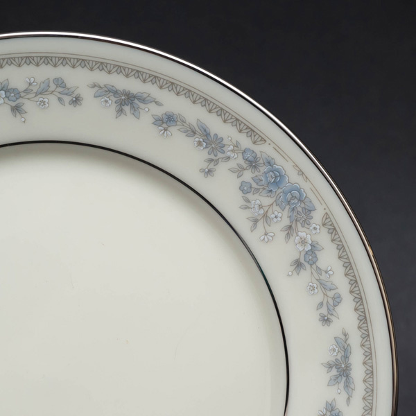アメリカの高級陶磁器ブランド、レノックスのレヴェリーの16cmプレート(パンプレート)。 "Reverie(夢想)"というシリーズ名の通り、レノックス独特のアイボリー素地に、淡いトーンで草花が描かれたやさしい雰囲気のシリーズ。プラチナ彩が全体を引き締め上品に仕上がっています。1998年に廃盤になっています。16cmプレートは、パンやケーキ用、取り分け皿としてお使いいただける便利なサイズです。 ■サイズ 直径165mm ■付属品 なし ■状態 A(美品):使用感のない、非常に状態の良いお品物です。 |