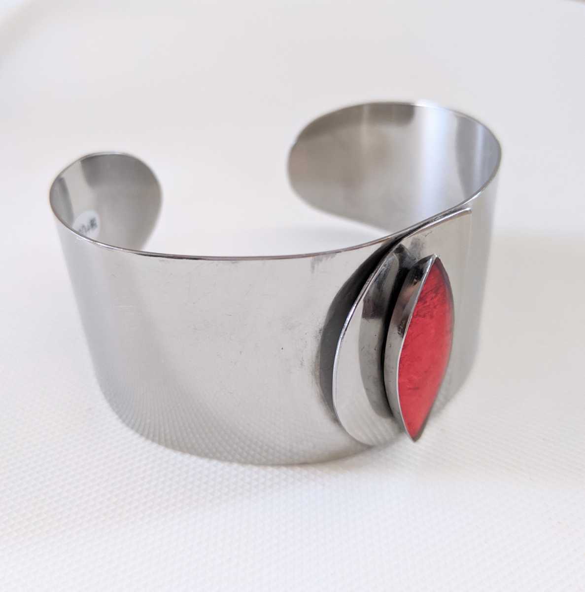 こちらは、 レッド シルバーカラー ステンレス ブレスレット になります♪
