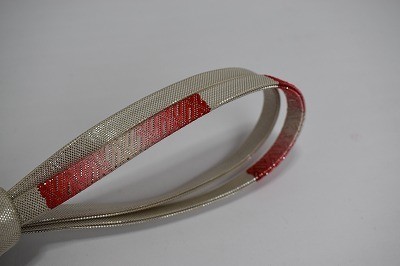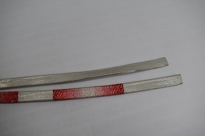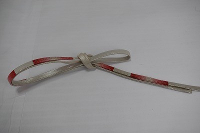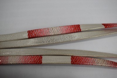 佐賀錦 帯締め 正絹 銀・紅色 和装小物 中古美品 oj44b★喜香★