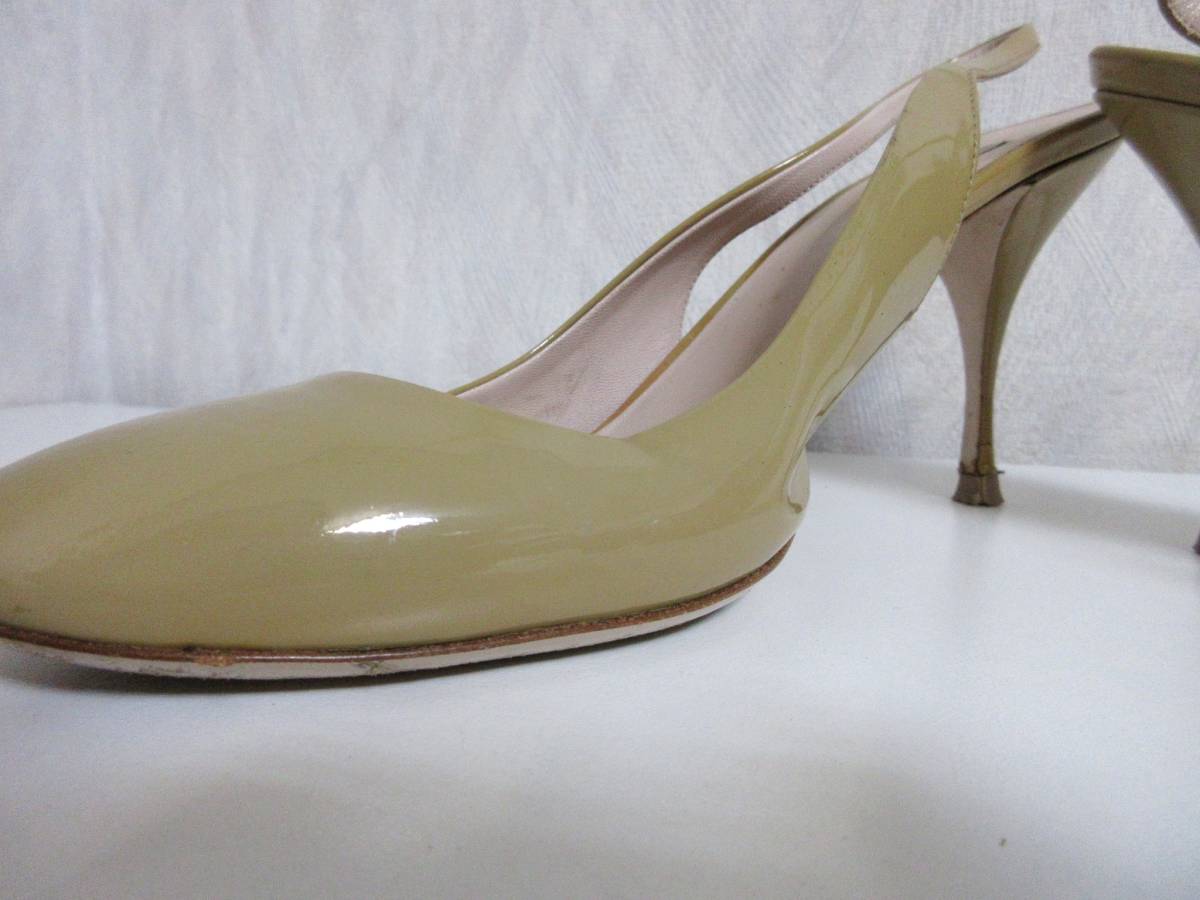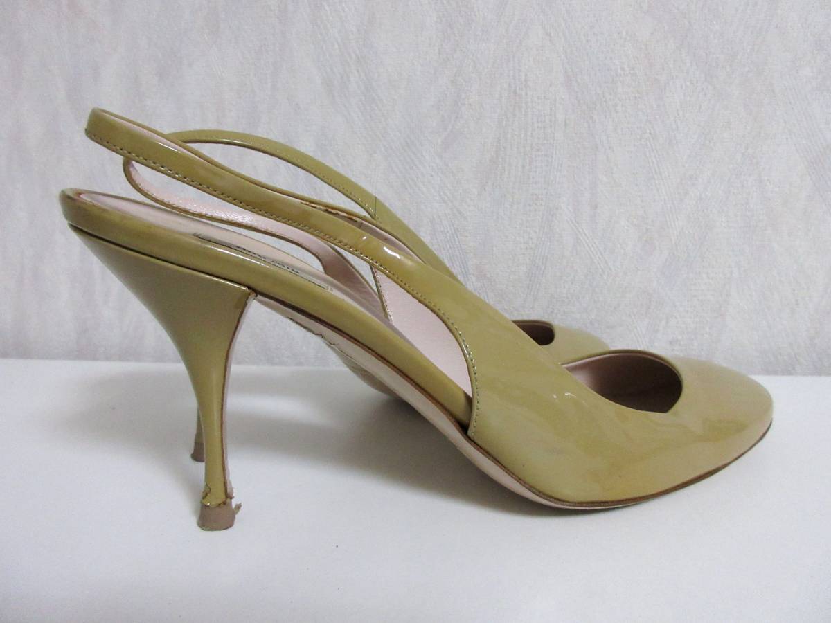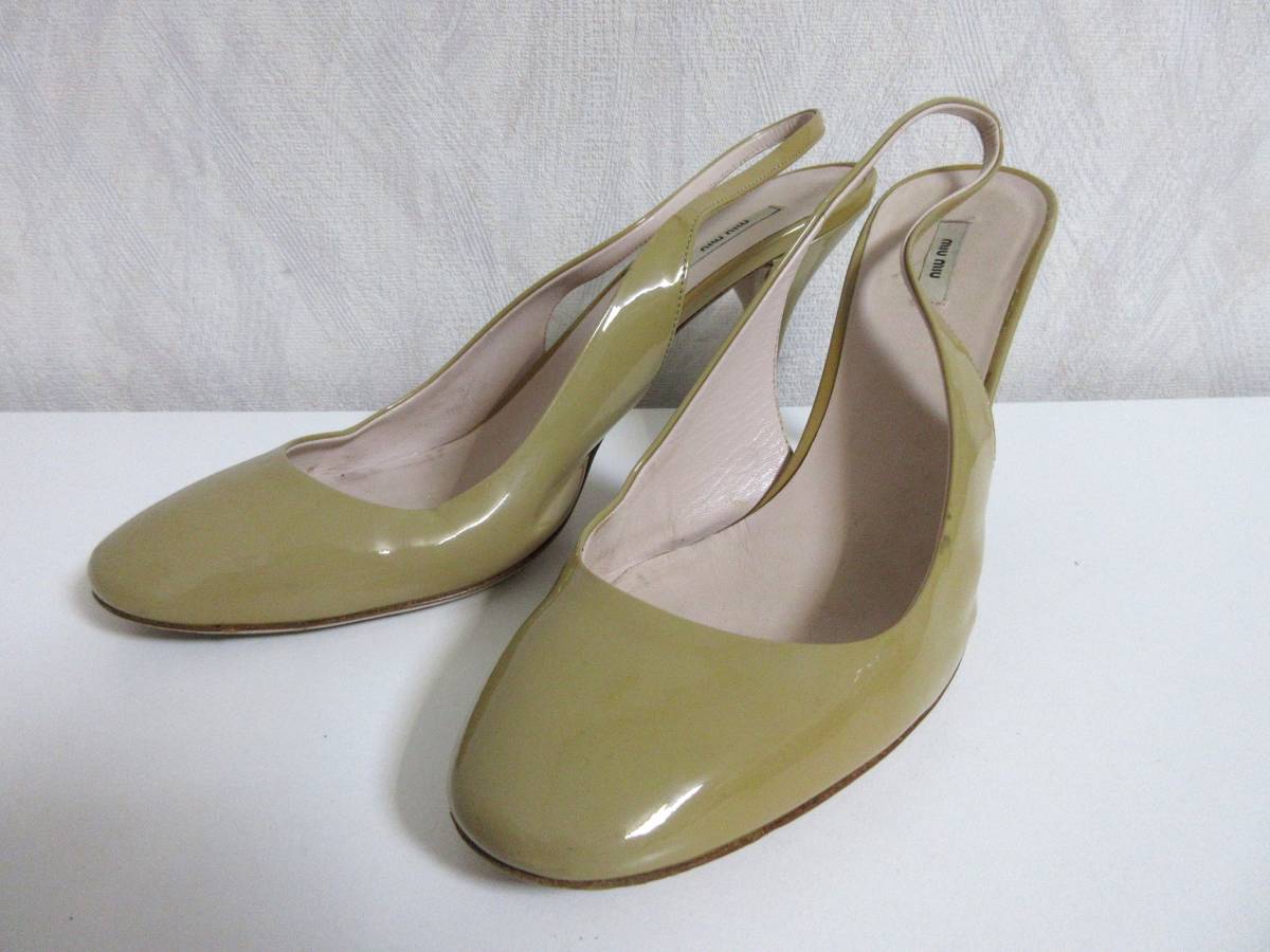 ミュウミュウ miumiu エナメル レザー バックストラップ パンプス ベージュ 36 1/2 北2764