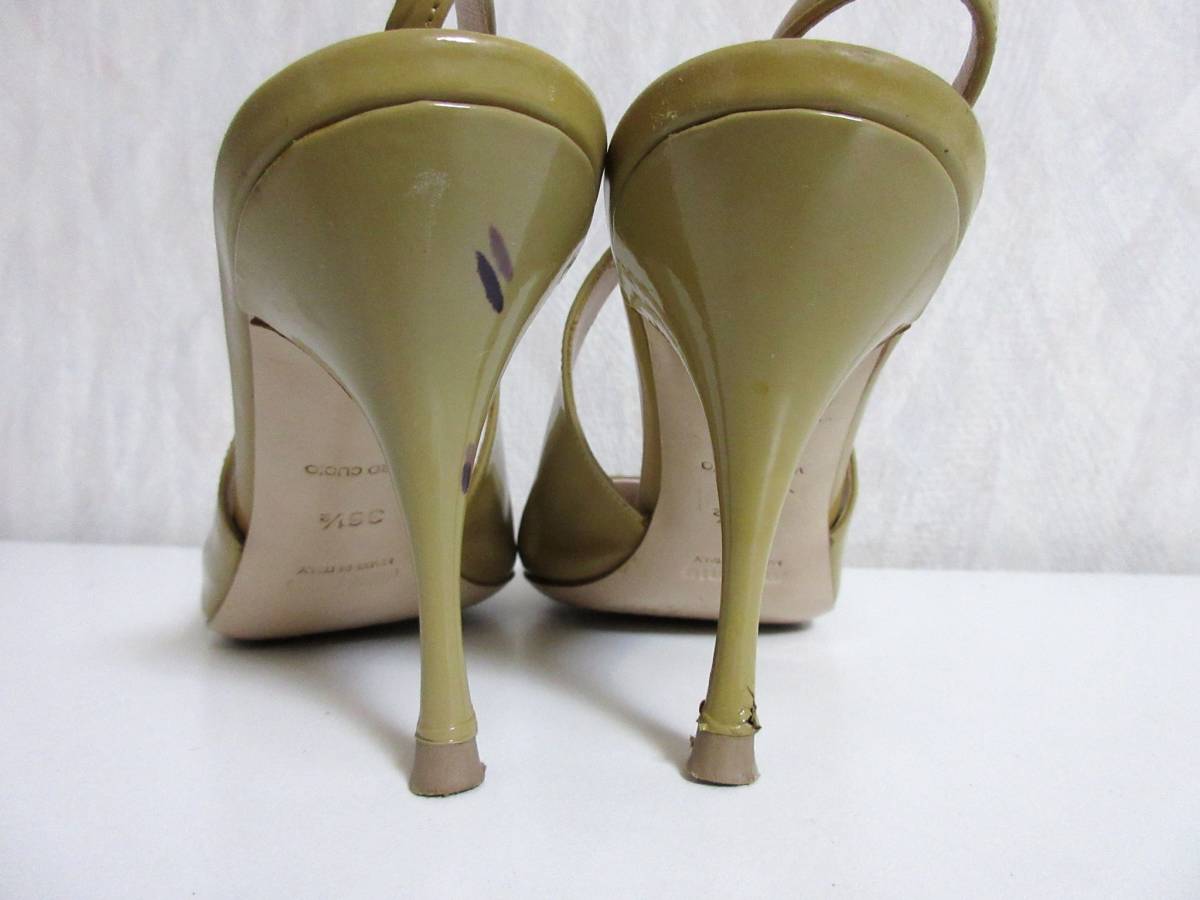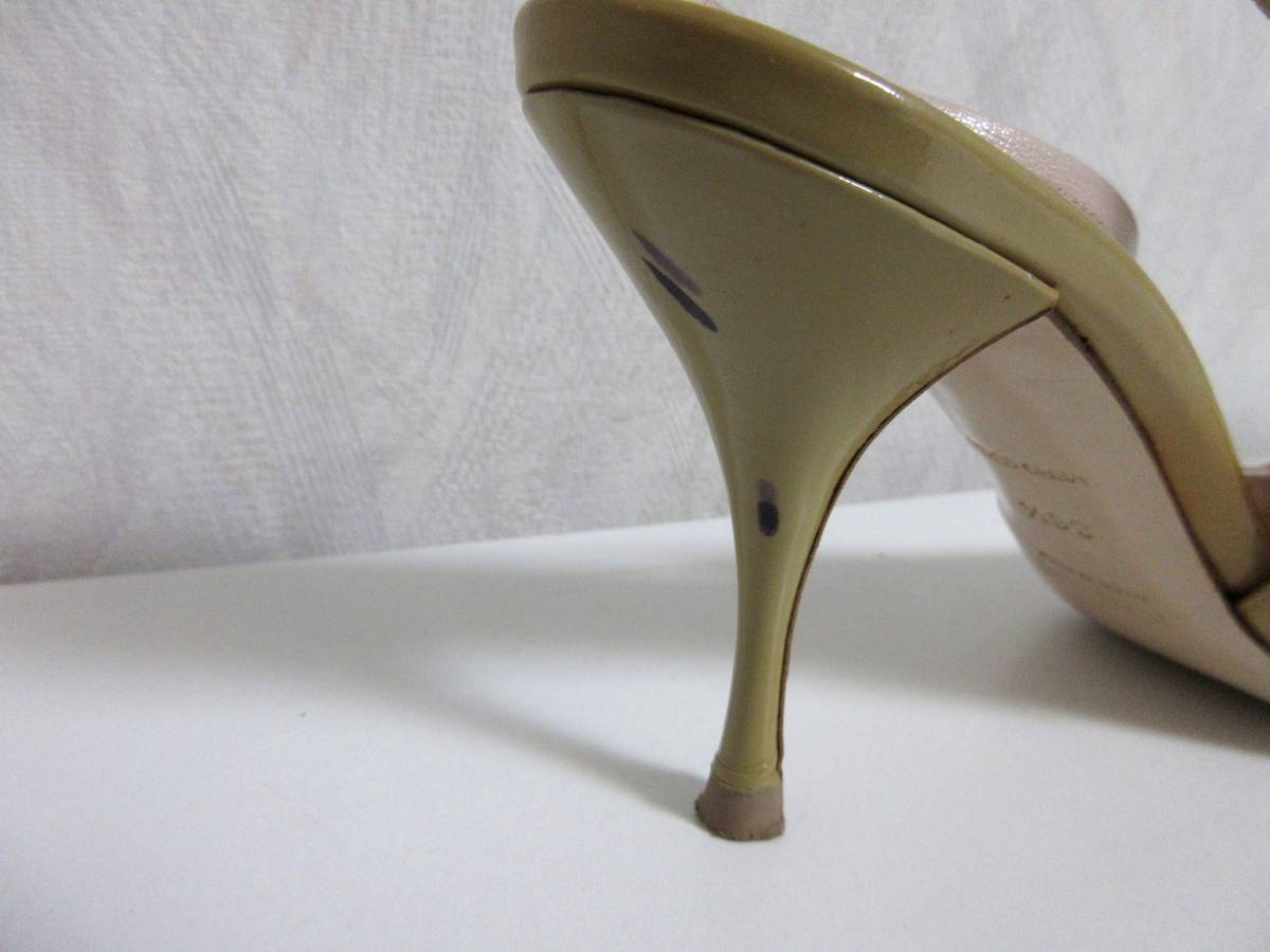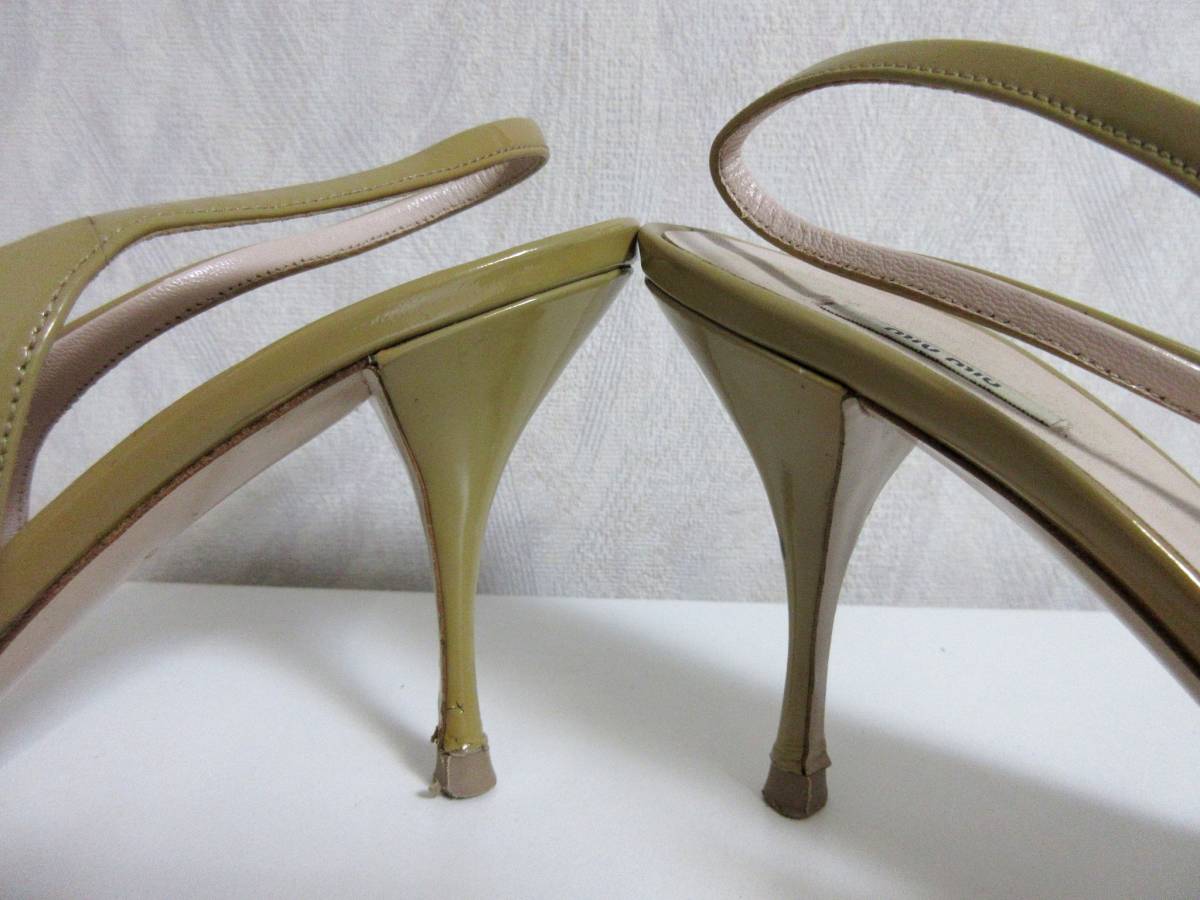 ミュウミュウ miumiu エナメル レザー バックストラップ パンプス ベージュ 36 1/2 北2764