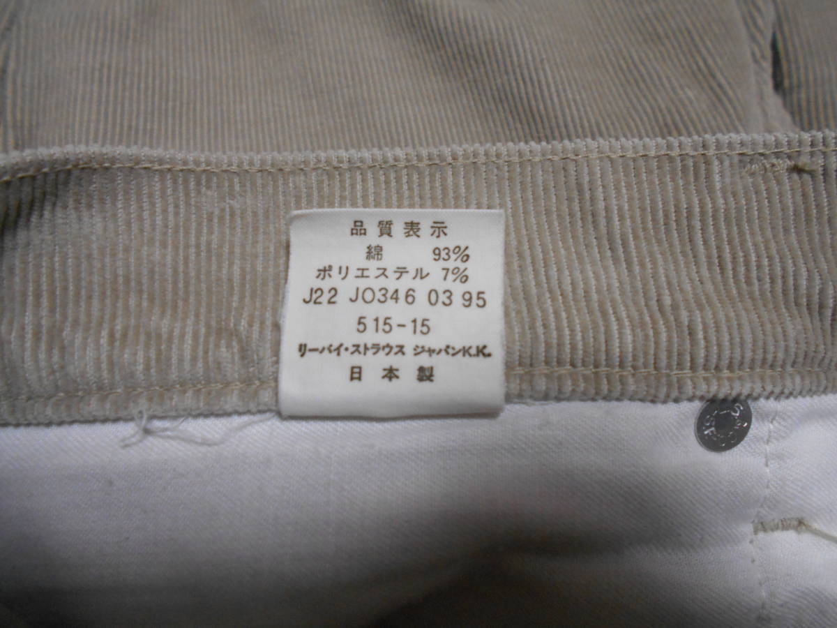 515 伝統のトラディショナルなストレートレッグスのシルエットライン、肌触り良く風合いあるコーデュロイ素材感、旧染料 ベージュの発色  等等... 極めて良い風合いのビンテージアイテム