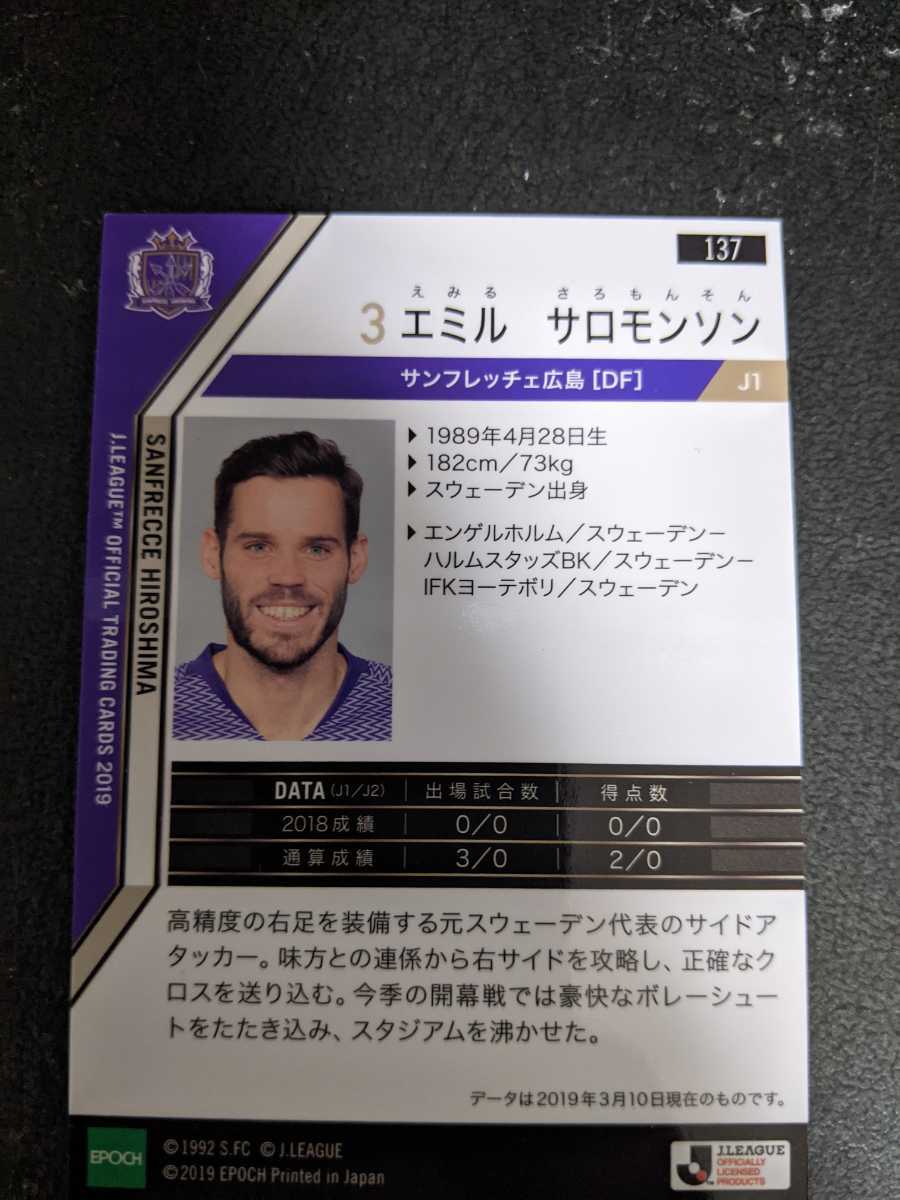 即決★Jカード2019 サンフレッチェ広島 エミルサロモンソン アビスパ福岡