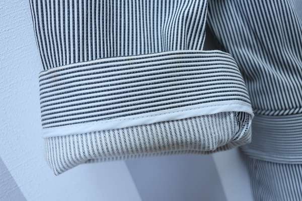 襟に薄黄ばみ、袖口の内側に汚れがございます。