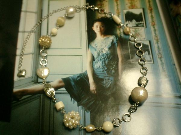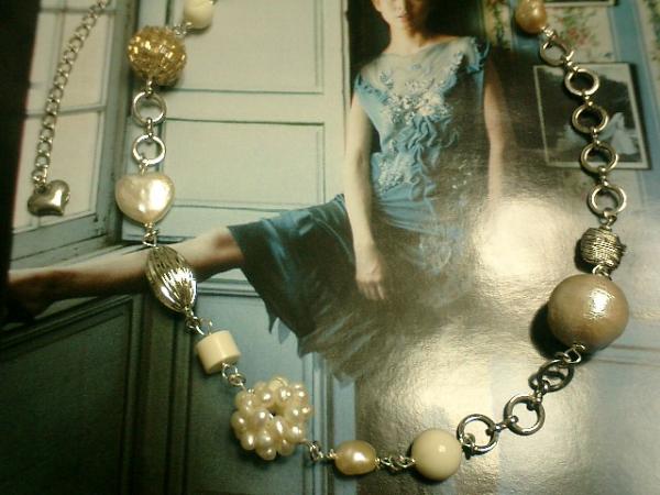 ロマンチックな淡水パールのネックレスです♪やさしいオフ・ホワイトの淡水パールは4ミリから13ミリ位のハートまで形も様々です♪可愛い淡水パールのボール球は15ミリで大きなコットンパールは13ミリ、15ミリ、シックなベージュのビーズ玉は10ミリ位です♪アクセントにメタルビーズやボーンビーズをはさんでいます。やさしいお色でまとめていますので合わせやすいと思います。シンプルで飽きのこないいつまでも着けられるデザインを考えて作りました!長さは43センチ+アジャスター15センチで最長58センチ位です。間に丸カンを使っていますので短くチョーカー風にも着けて頂けます。お揃いのブレスレットも出品予定です♪ハンドメイドをご理解頂いてノークレーム、ノーリターンでお願いします