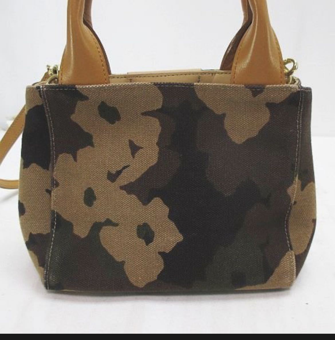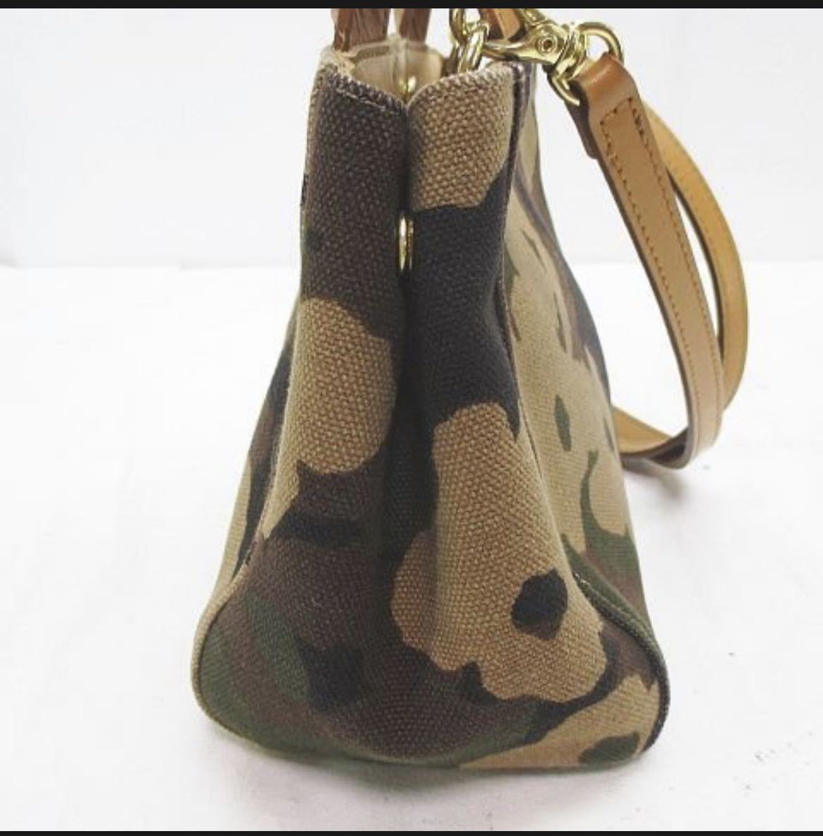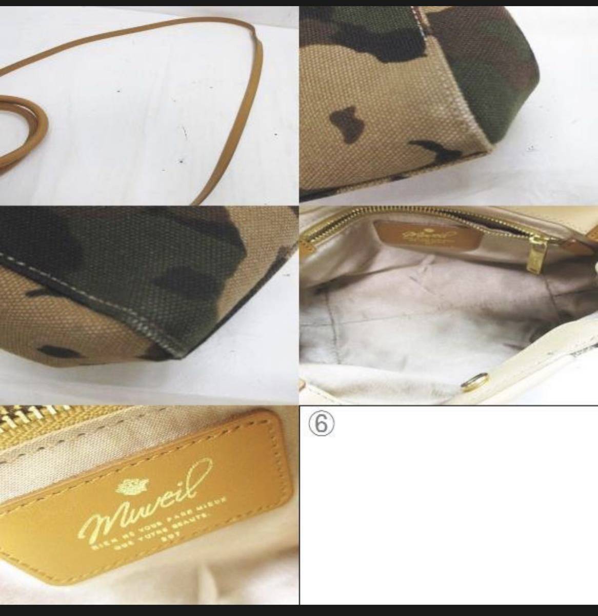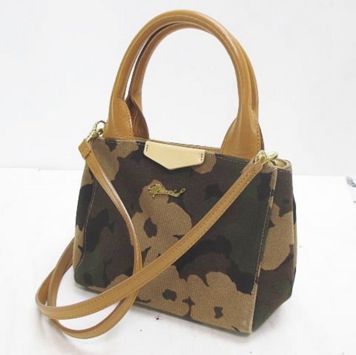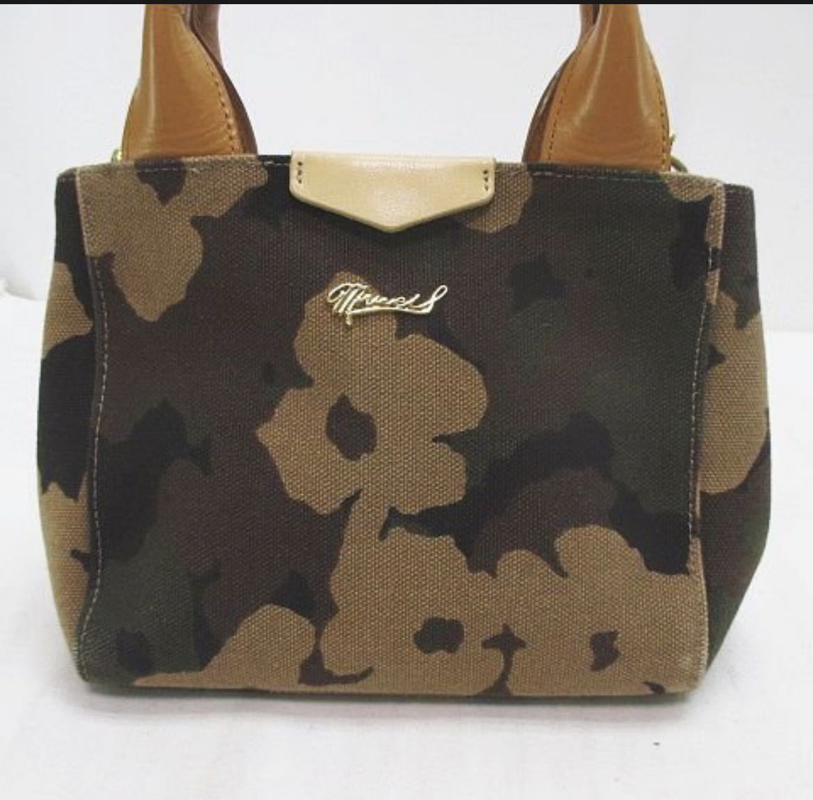 MUVEIL ミュベール 2WAY トート ハンド ショルダー 迷彩柄 カーキ キャンバス地 レザー レディース