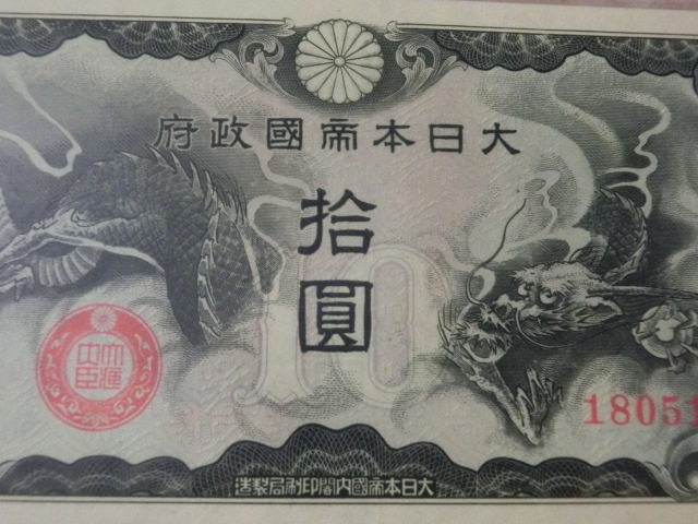 日華事変軍票 戊号10円の組番号(1)で極美品です。