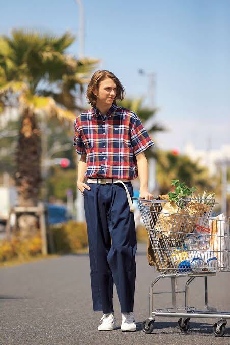 ワイドなシルエットがこなれ感を演出し、ワークテイストな雰囲気に。