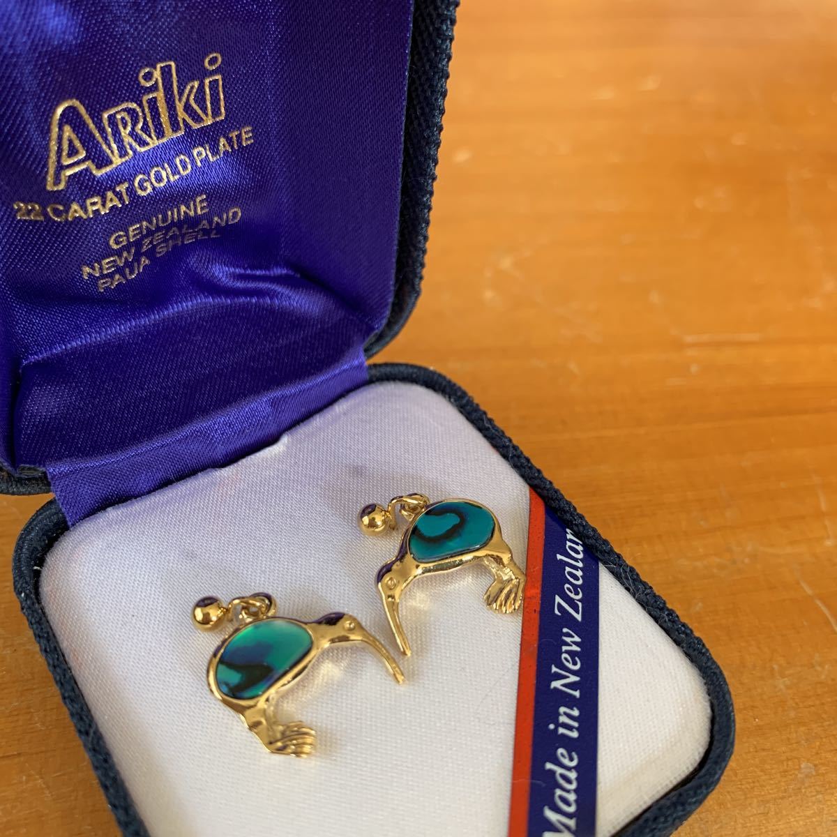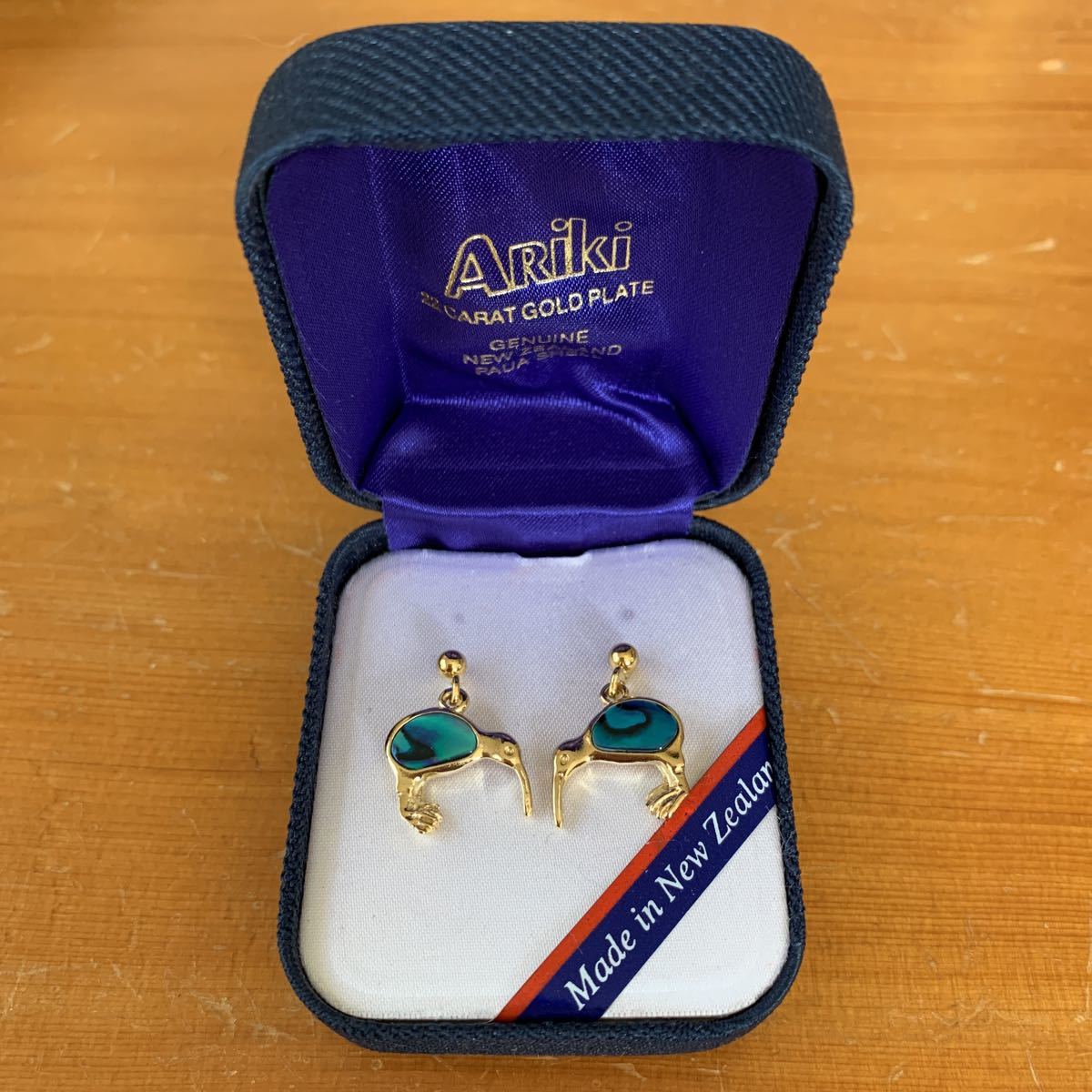 ニュージーランド パウア貝 ピアス 鳥 Ariki アリキ 箱付き PAUA SHELL 22カラットGoldplate 新品 未使用品 送料無料の出品です。 納戸の整理(断捨離)で今後使用予定が ない為出品しました。 衣装ケースに入れて保管してました。 サイズ 鳥のモチーフ本体 横1.5センチ縦1.3センチ