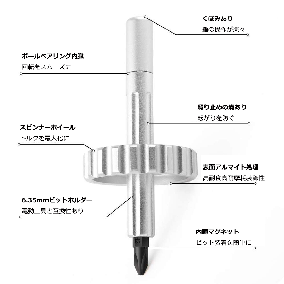 | 商品詳細 | ・小さいのに強いトルクを生み出すことが可能なドライバーセット。 ・10種のビットで様々な作業をこなせる。 ・ビットの装着部分に磁石が内蔵されており、ビットは本体に吸い込まれるように装着可能。 ・アルミニウム合金A6061素材をCNC削り出し、目をみはるほど美しいアルマイト仕上げ。 ■商品仕様 ・付属ビット プラス:PH0、PH1、PH2 マイナス:SL2.5、SL4.5、SL6.5 トルクス:TR10、TR15、TR20、TR25 ・シャンク径:6.35mm(1/4インチ) ・ビット長さ:25mm ・色:シルバーとブラック |