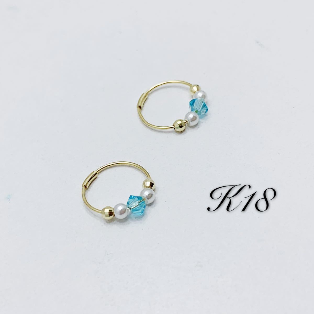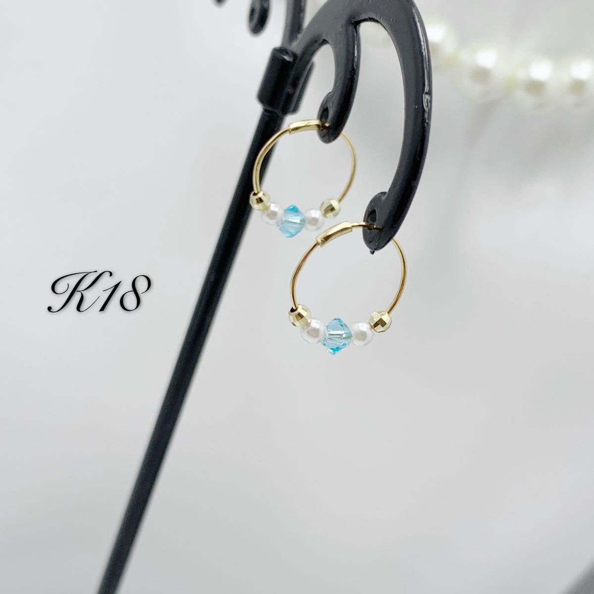 K18 18金 フープピアス アクアマリンピアス プレゼント