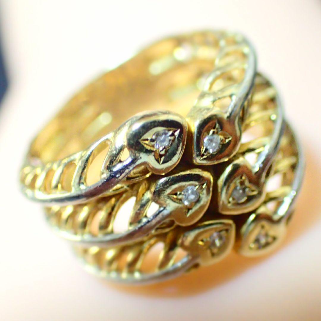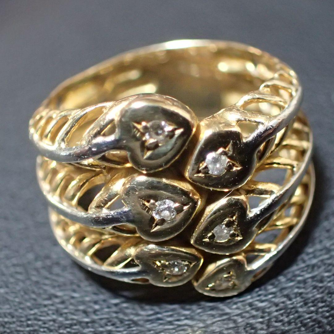 コンビデザインで幅が約15mmもある極太デザインで、ダイヤモンドが6p   リング(コンビ)大変贅沢なお品物になります。